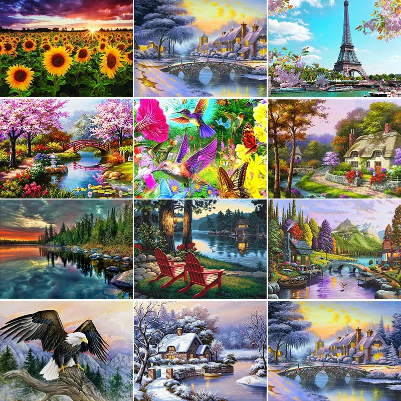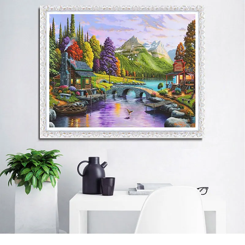Пейзаж сделай сам 5D алмазная живопись, полная круглая мозаика, деревенский дом, пейзаж, алмазная вышивка, картина стразы, домашний декор