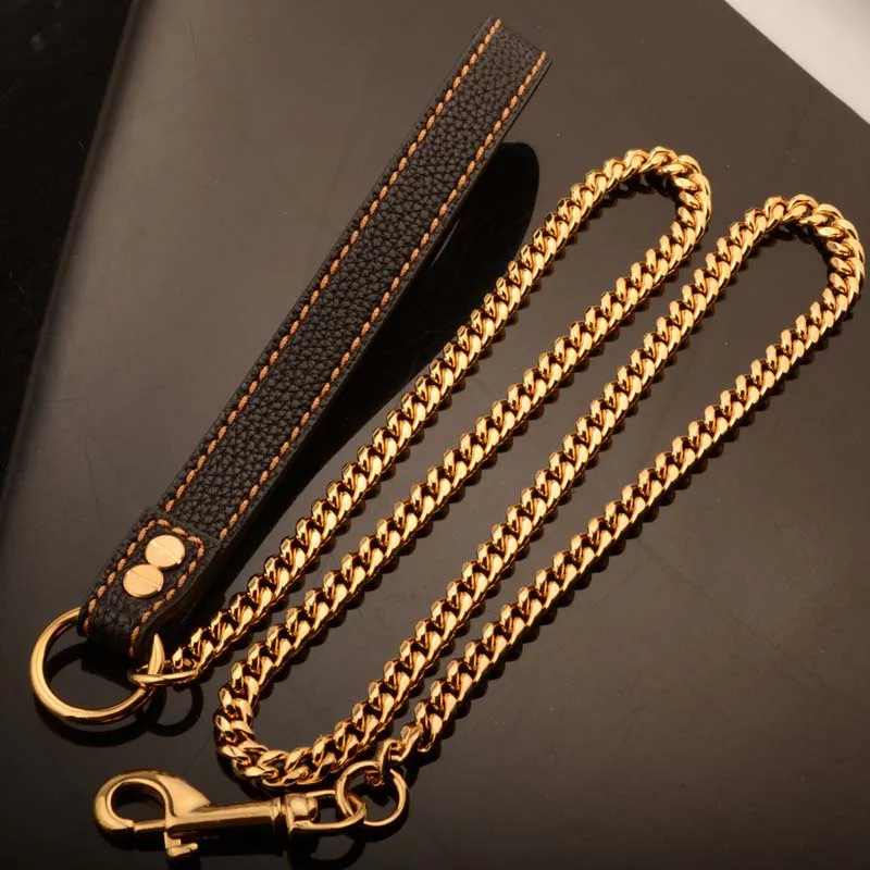 Позолоченный ошейник для собак из нержавеющей стали, цепь для собак...