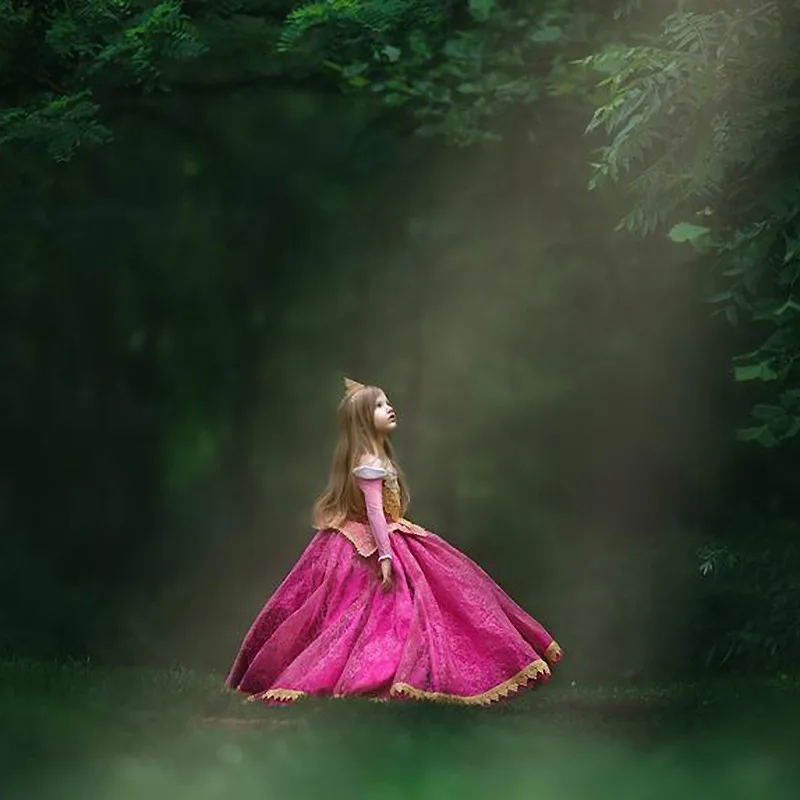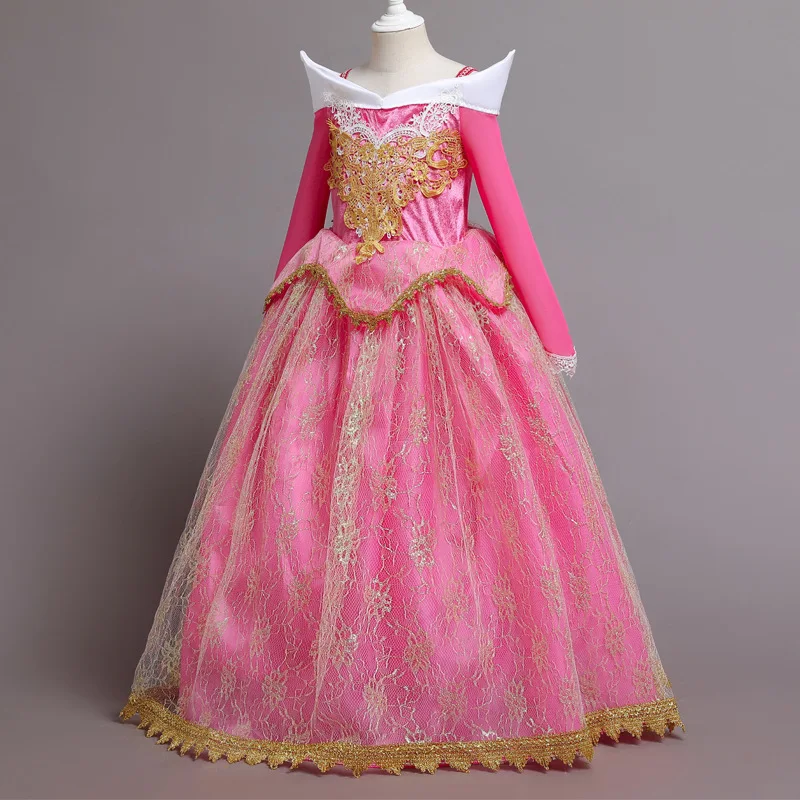 Платье принцессы Спящая красавица Disney, кружевное ажурное вечернее платье с вышивкой для косплевечерние, детское бальное платье, платья