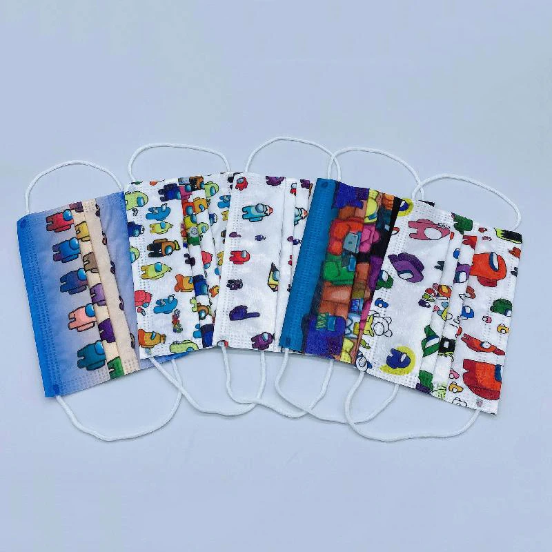 50 шт. одноразовая игровая маска для лица, 3-слойная фильтрующая Пылезащитная дышащая тушь для ресниц, мультяшная кавайная детская маска с принтом для лица