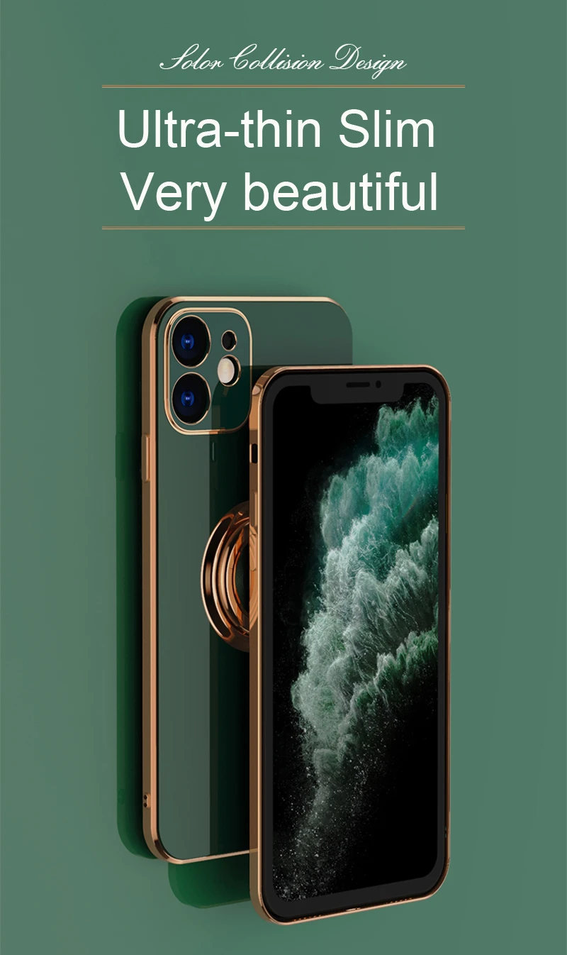 FeaturesSoft Plating Silicone TPU Case With Stand Ring Holder