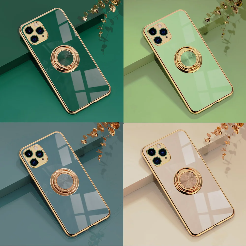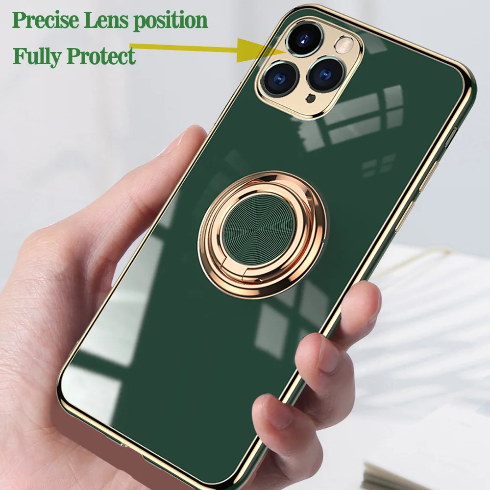 Роскошный чехол с кольцом для iPhone 12 11 Pro Max XS XR X S 7 8 Plus SE 2020, силиконовый мягкий мини-чехол с покрытием и подставкой-кольцом