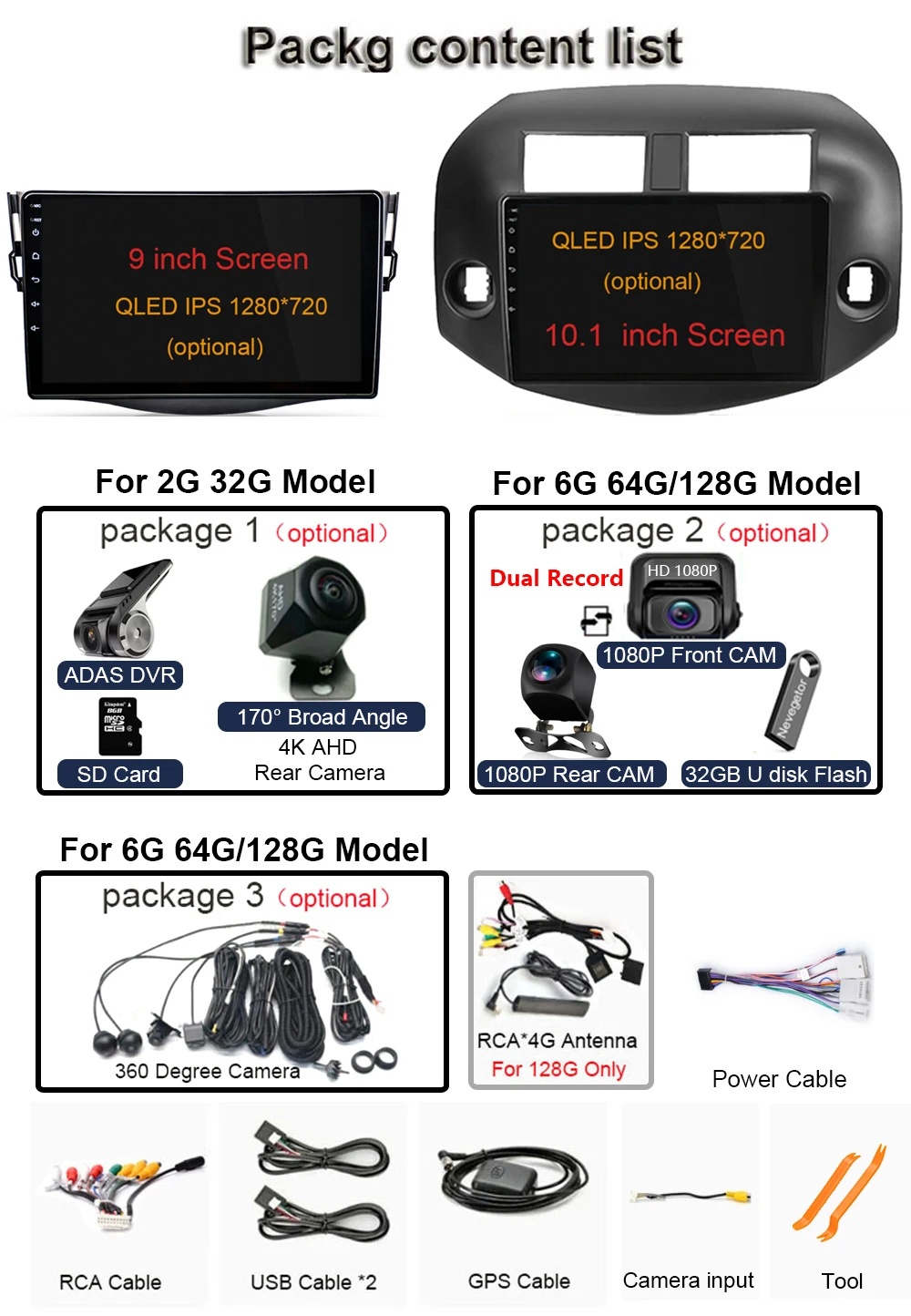 RAM+ROM:2G+32G / 6G+64G/ 6G/8G+128G (Optional)