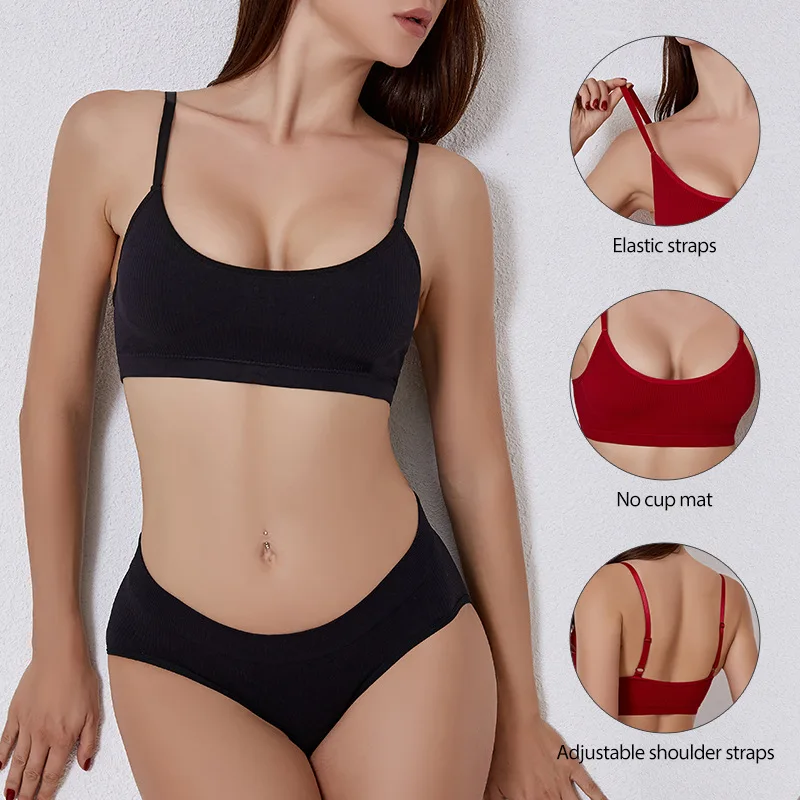 Комплект женского нижнего белья с регулируемыми бретелями, однотонн...