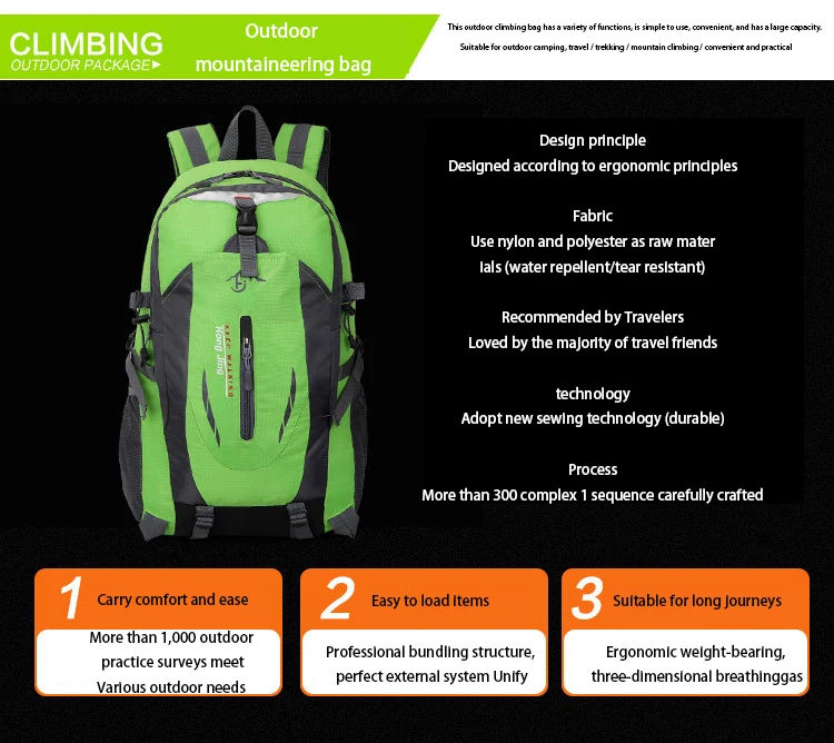 Уличная сумка для альпинизма 40 л, Вместительная дорожная уличная с...