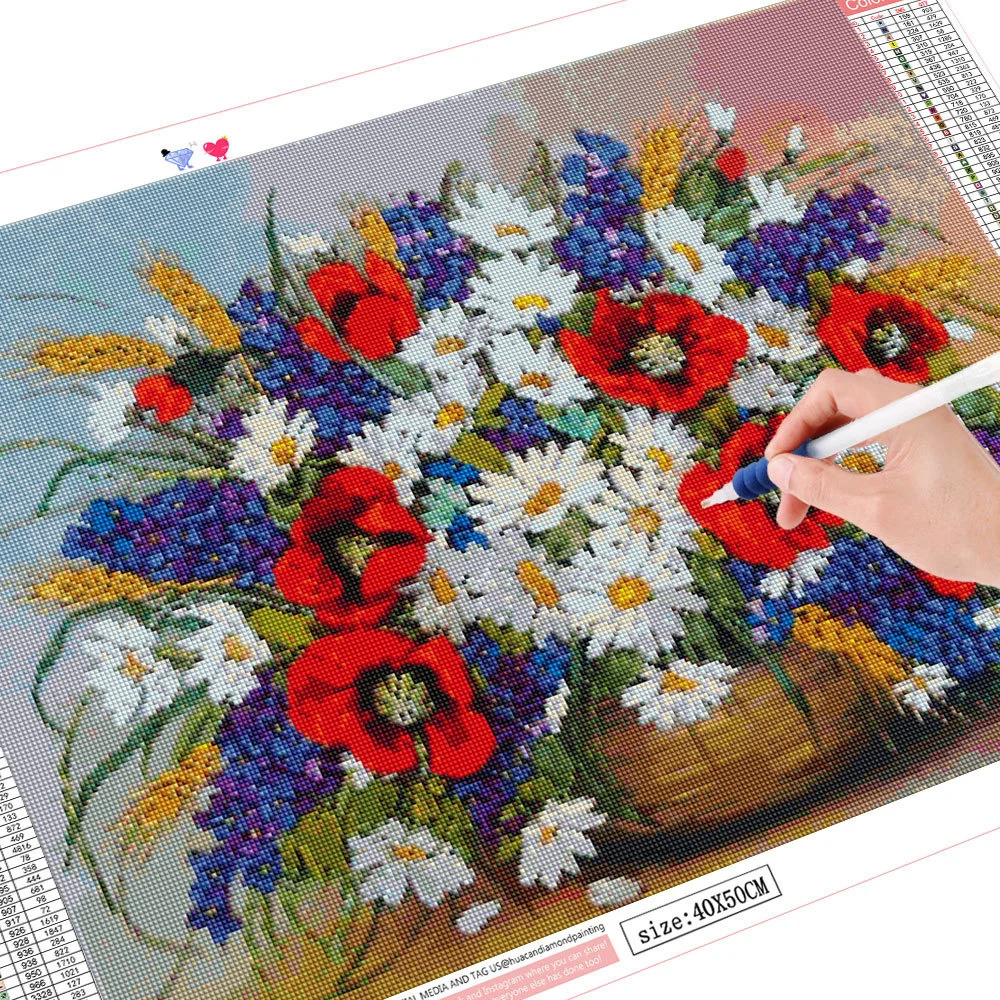 HUACAN настенные картины, алмазная вышивка, картина, цветок Поппи, наборы крестиков, Алмазная мозаика, стразы ромашки, фотографии