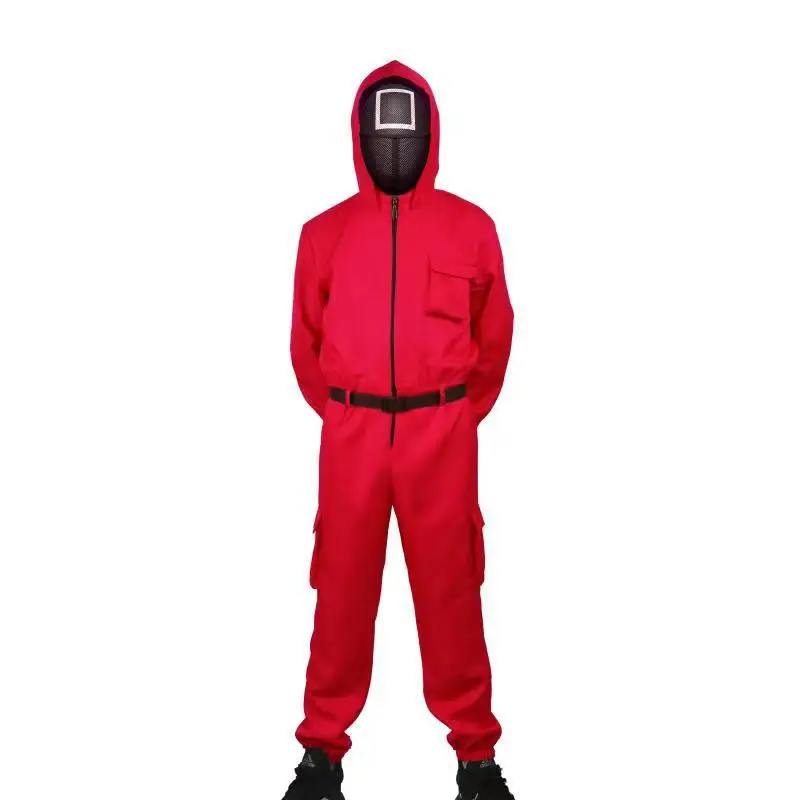 Комбинезон для игры кальмар, комбинезон для босса, пальто, перчатки, круглый красный костюм Шесть злодей для взрослых и детей, костюм для вечевечерние НКИ на Хэллоуин, подарок