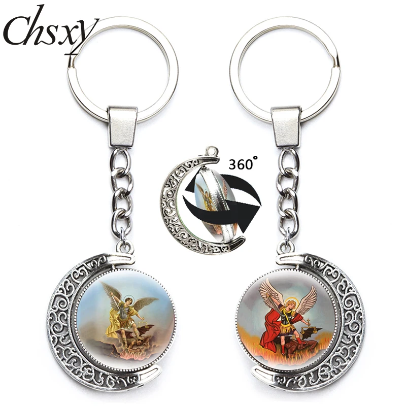 Новинка, модный брелок Archangel St.Michael, вращающаяся на 360 градусов искусственная кожа для женской сумки, автомобильный аксессуар, цепочка для ключей, ювелирные изделия