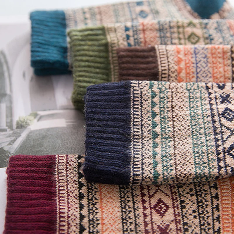 Мужские зимние шерстяные носки, утепленные теплые хлопковые носки средней длины, модные воздухопроницаемые носки в стиле ретро, в национальном стиле