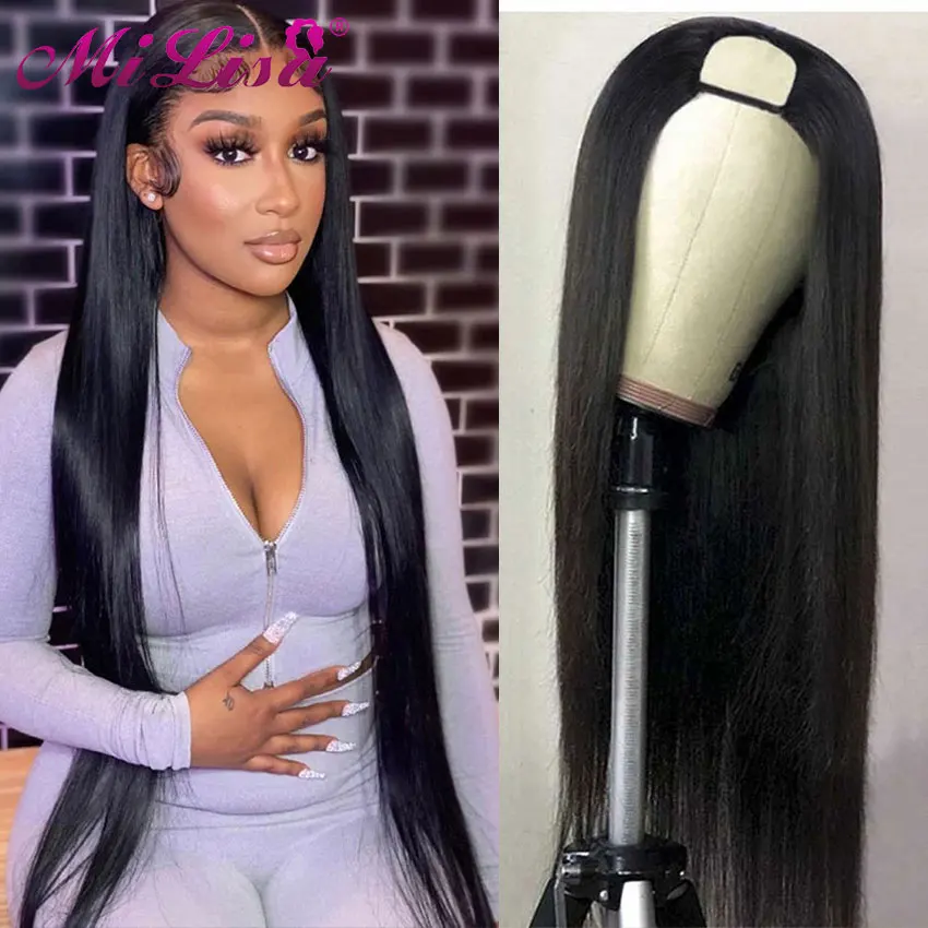 Прямые волосы Mi Lisa, парик с U-образной пряжкой, человеческие вол...