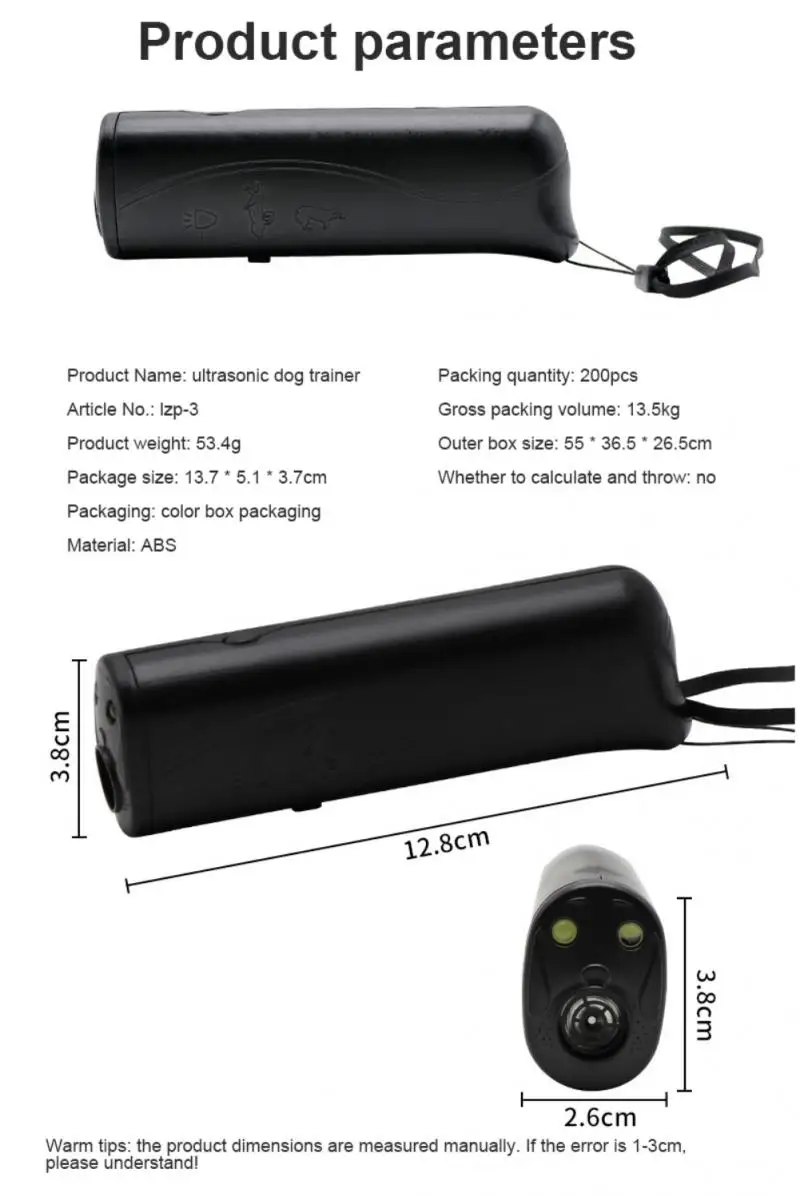Портативное устройство для тренировки собак, ультразвуковое светодиодный ное устройство против лая, без аккумулятора, 1 шт.