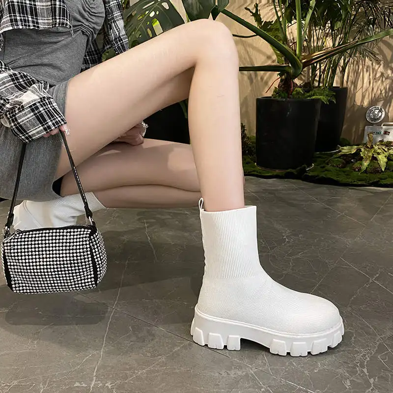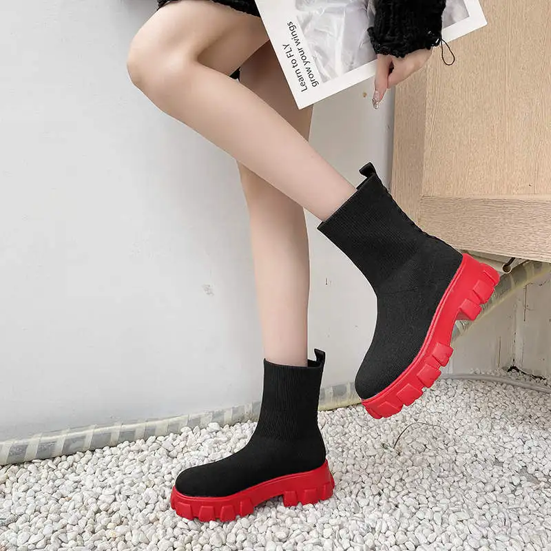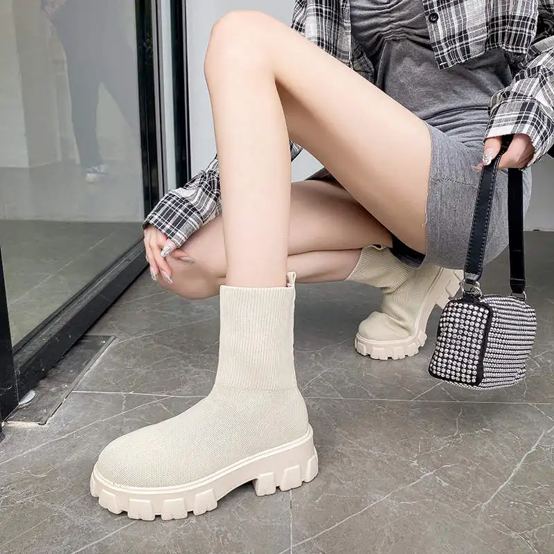 Женские ботинки-носки на платформе, лето-осень 2021, дышащие коротк...