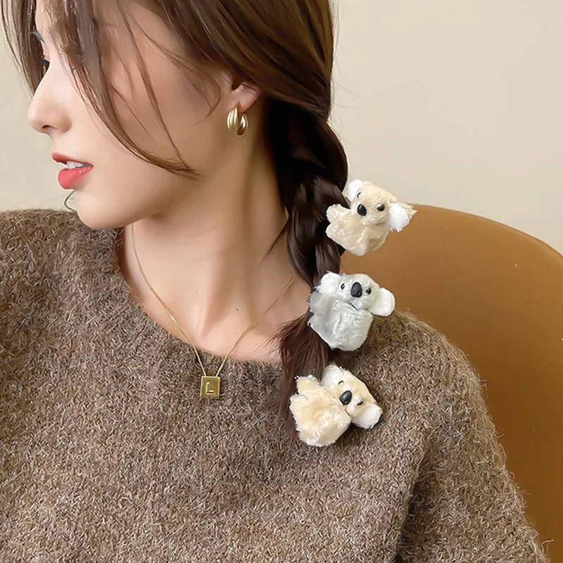 Новинка 2022, плюшевая заколка в Корейском стиле, меховая мультяшная боковая заколка, красный головной убор для девочек, заколка для волос, повязка на голову, аксессуары для волос