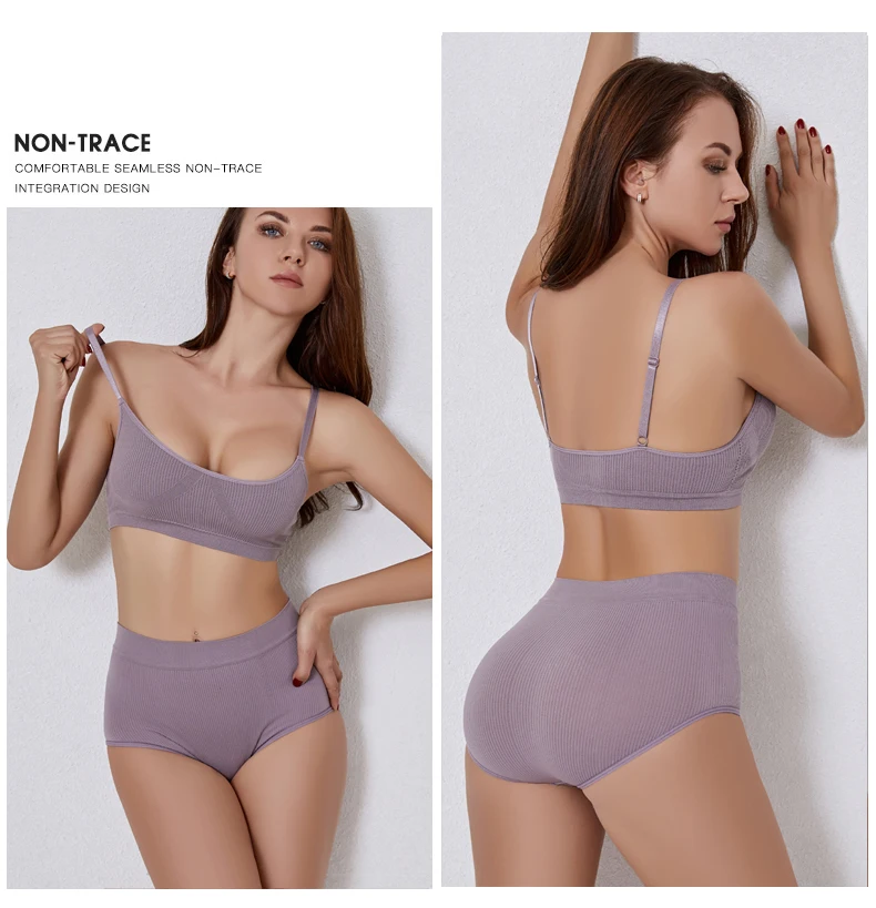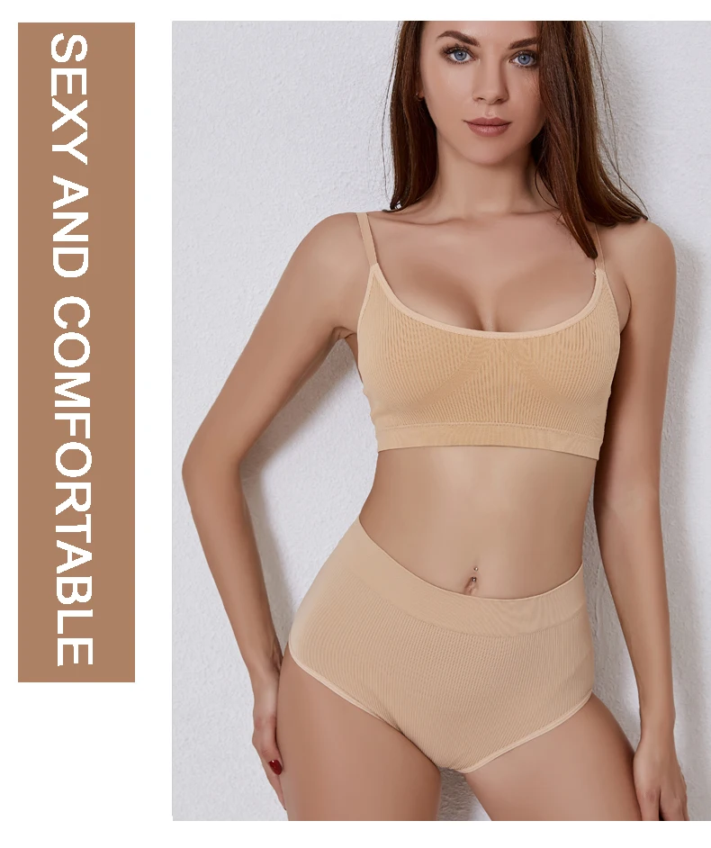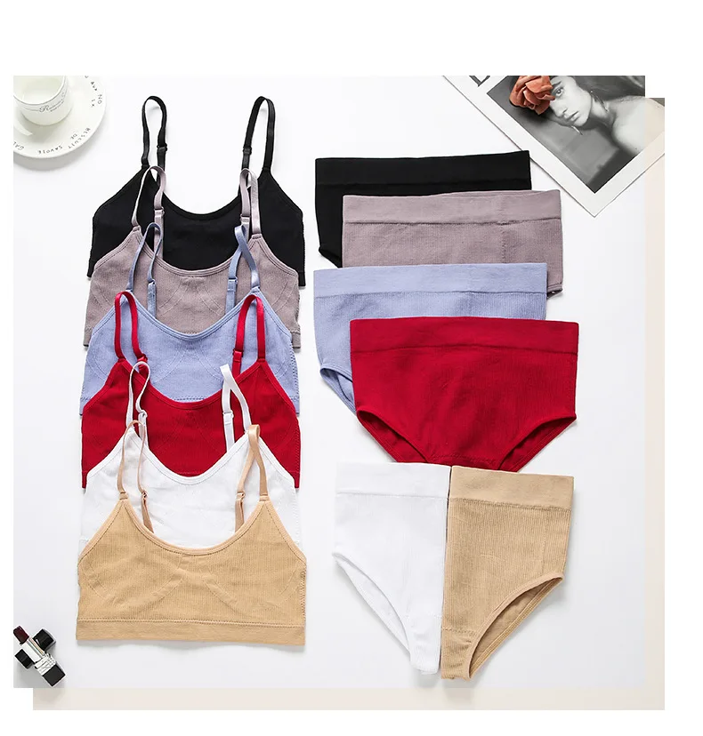 Бесшовный комплект женского нижнего белья, Трусики с высокой талией для живота, нижнее белье с тонкими подкладками и регулируемыми бретелями, женский удобный костюм без косточек