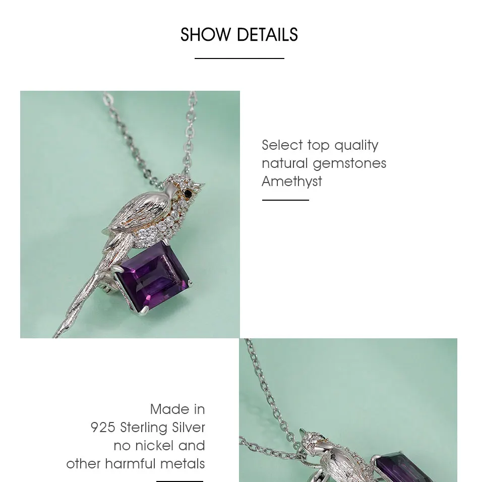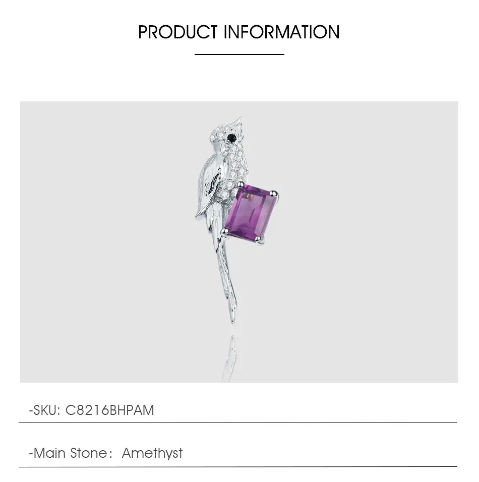 Женская Брошь из серебра 925 пробы, с натуральным аметистом