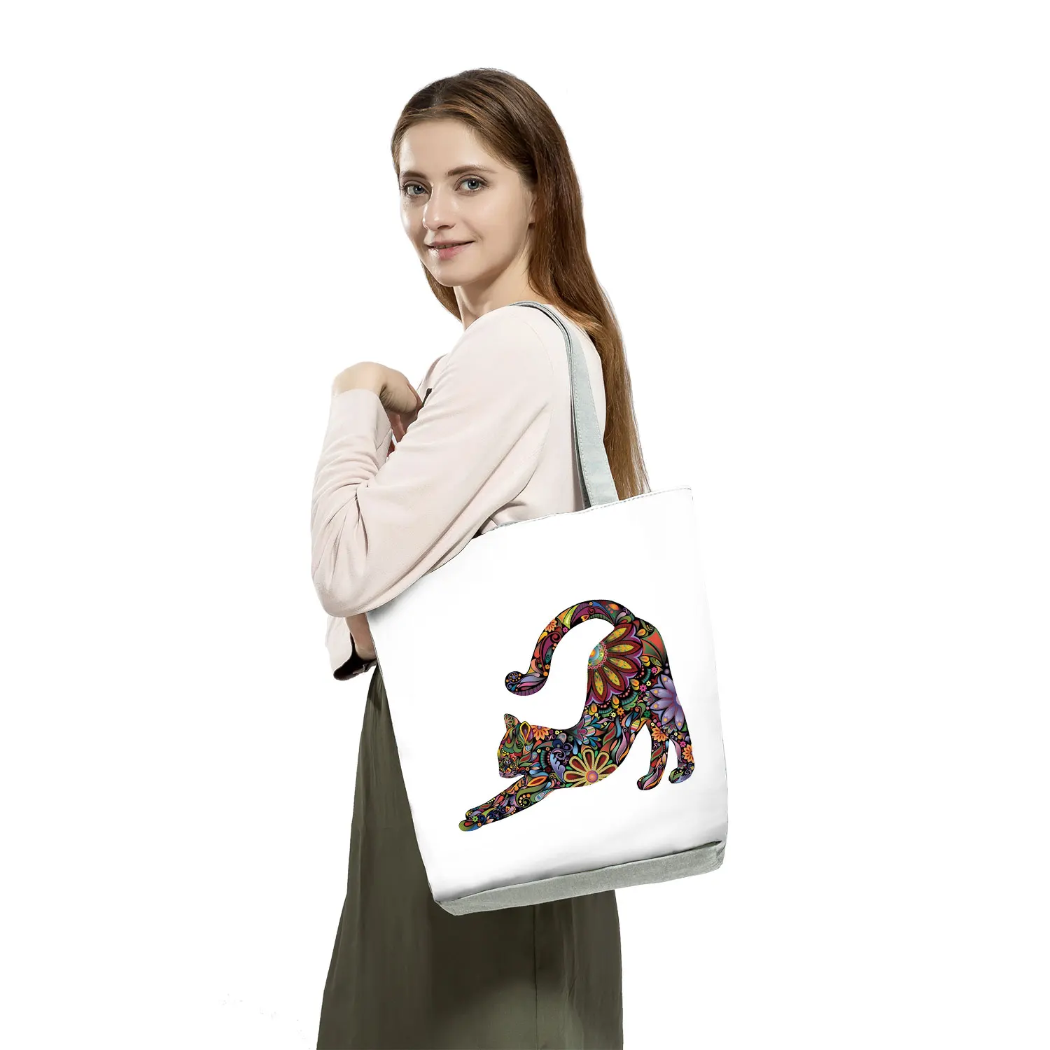 Женская сумка-тоут с цветочным принтом для домашних животных и кошек, повседневная школьная сумка через плечо, многоразовые сумки для покупок для супермаркета
