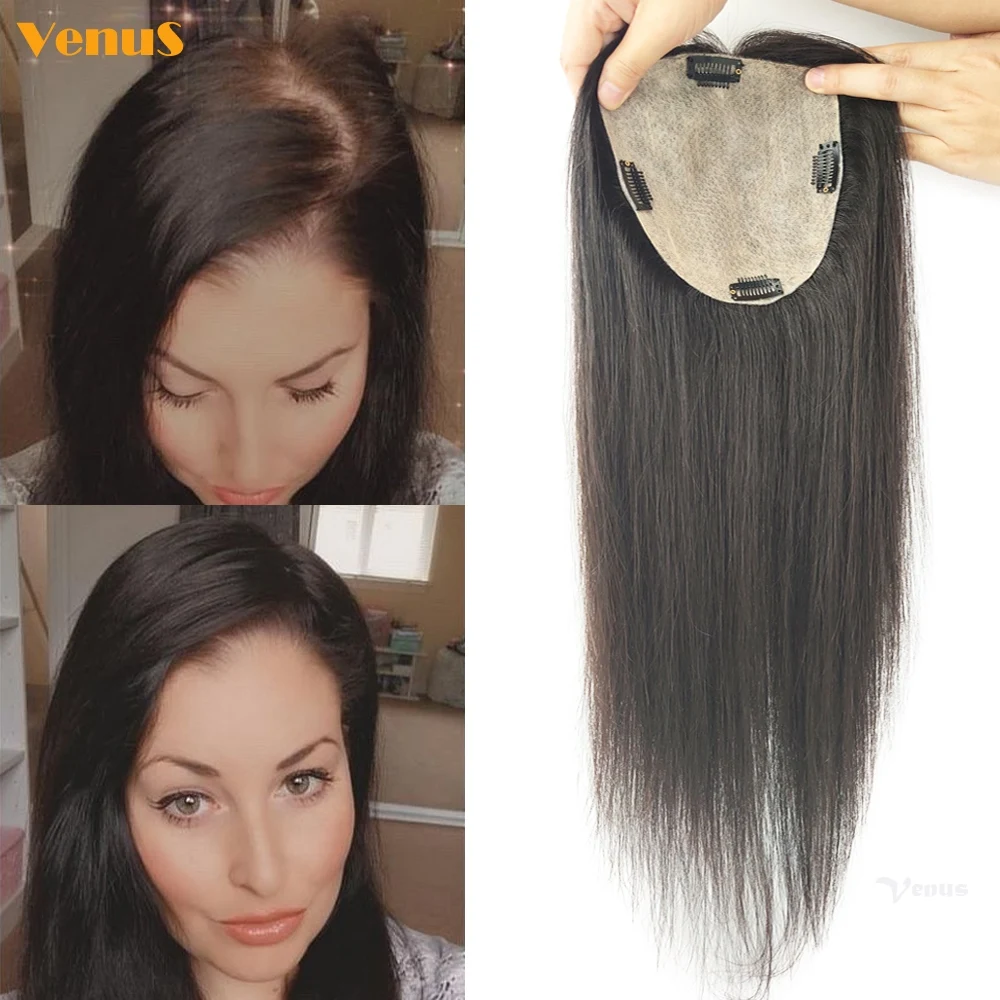 Натуральные человеческие волосы Топпер 12x13 см с зажимом по периметру Шелковый Топ человеческие волосы для женщин европейские воздухопроницаемые волосы на основе кожи