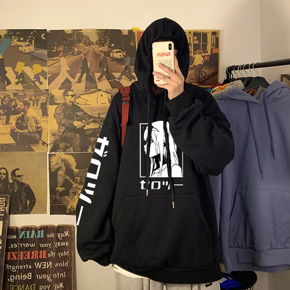 Толстовка с капюшоном Zero Two хип-хоп с принтом манга, Японская уличная одежда для женщин и мужчин, свитшоты на веснузиму, пуловер