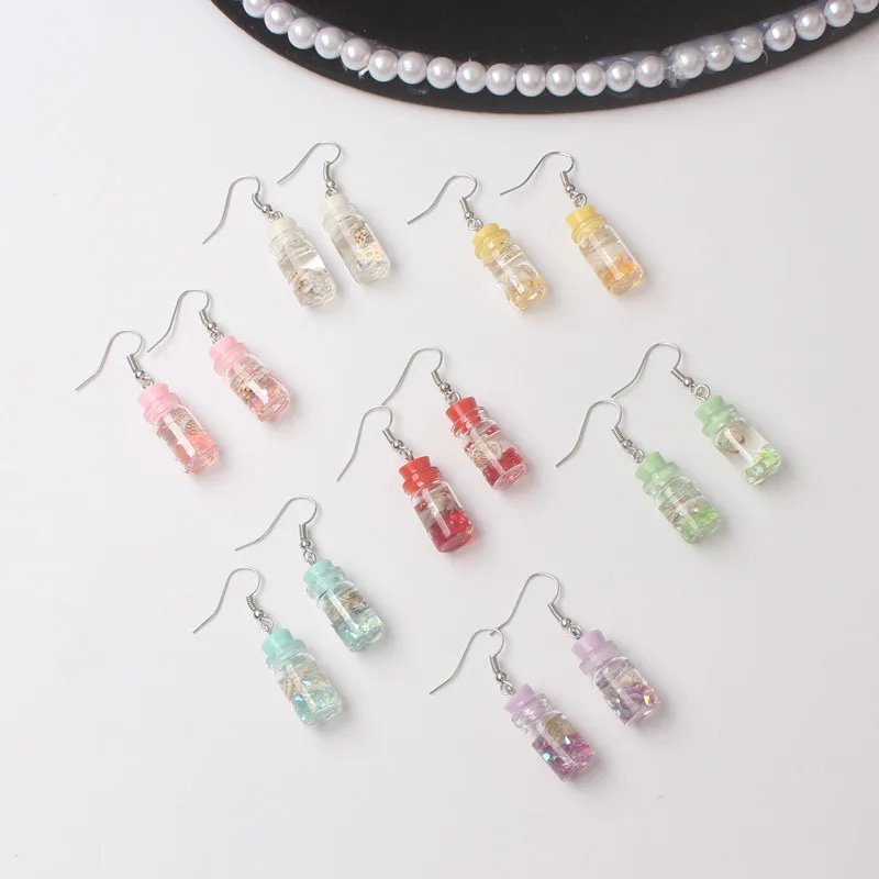 Милые акриловые подвески, серьги с крючком, блестки, пивная бутылка, Женские Висячие серьги, корейская мода, медведь, маленькие серьги, серьги