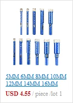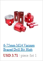 Особенности:Интегрированная смазка, вспомогательное охлаждение и продлевает срок службы, что означает, что нет необходимости в дополнительной смазке.Лазерная гравировка, диаметр на корпусе для удобства идентификации.Используется для резки твердой фарфоровой плитки, керамики, мрамора и шифера с легкостью.Спецификация:Материал: бриллиантЦвет: синий + серебристыйДиаметр отверстия: 6 мм, 8 мм, 10 мм, 12 мм, 14 мм, 16 ммПосылка включает в себя: 1 сверло