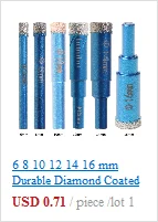 Прочное сверло с алмазным покрытием, насадка для сухого сверления стекла, мрамора, гранита, кварца, фарфора, керамики, 6810121416 мм