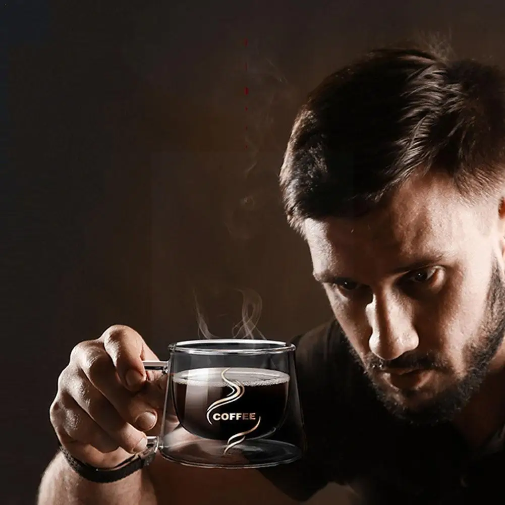 Креативная кружка с двойным дном, стеклянная кофейная кружка с высоким содержанием боросиликатной чашки, кружка с двойным слоем и квадратной граммой, модная кофейная чашка