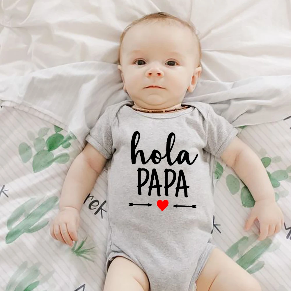Комбинезон для новорожденных Hola Papa детский, повседневный комбинезон с коротким рукавом, с забавными испанскими, для мальчиков и девочек, идея для папы, подарки