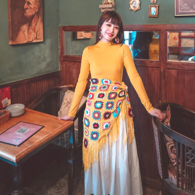 Женская накидка, 2021 чистый Ретро-шарф ручной работы в стиле мори, девичье искусство, Веерообразный вязаный богемный полый шарф, шаль, оригинальный треугольный шарф