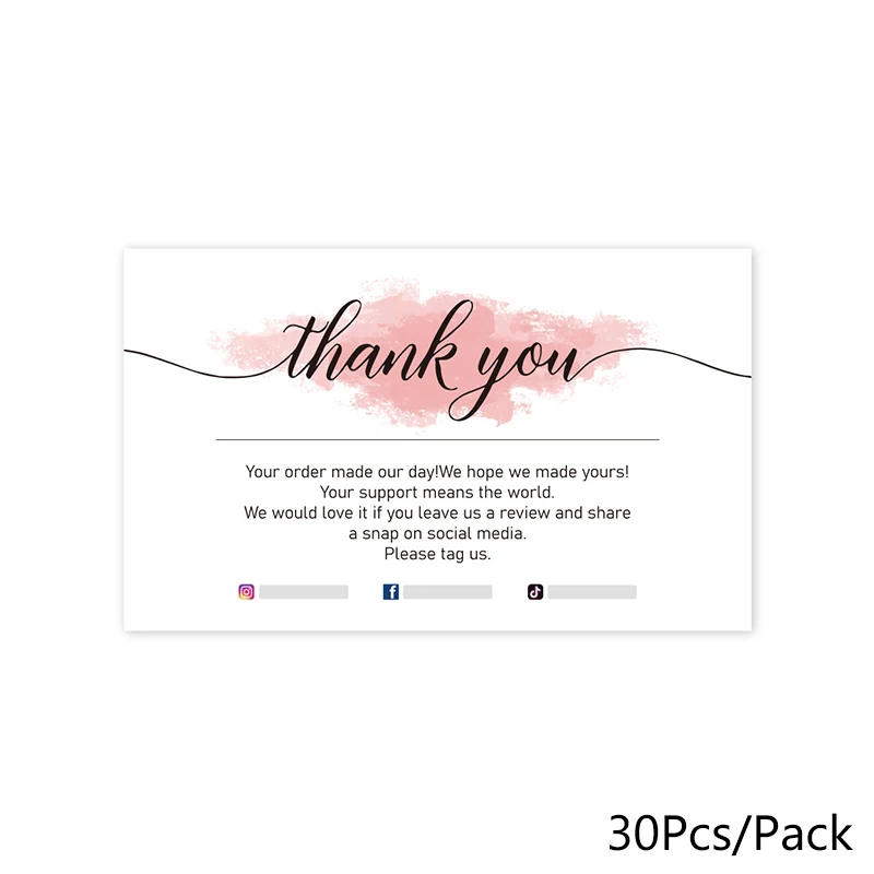 30 шт., розовые акварельные открытки, Спасибо за заказ, подаропосылка
