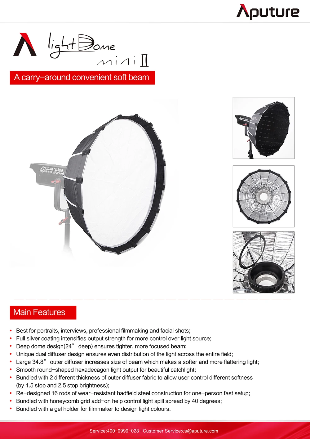 Свет Aputure Dome Mini II софтбокс с сетчатым рассеивателем вспышки для Light Storm 120 и COB 300 серия Bowens Mount LED Lights