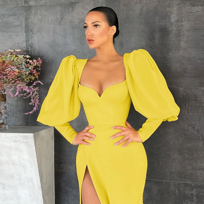 WannaThis, женские платья с рукавами-фонариками, с высоким разрезом...