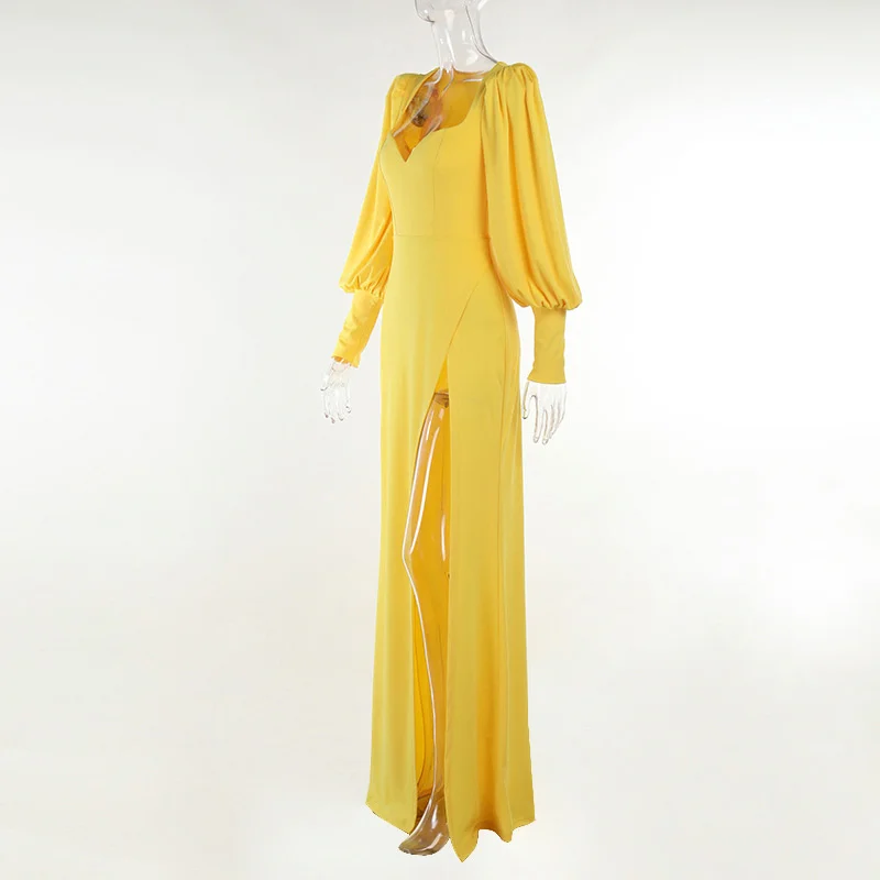 Женское длинное платье с разрезом и рукавами-фонариками, весеннее о...