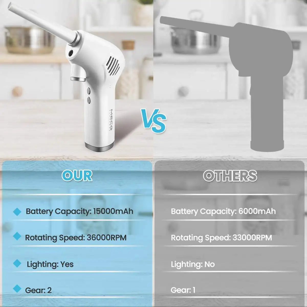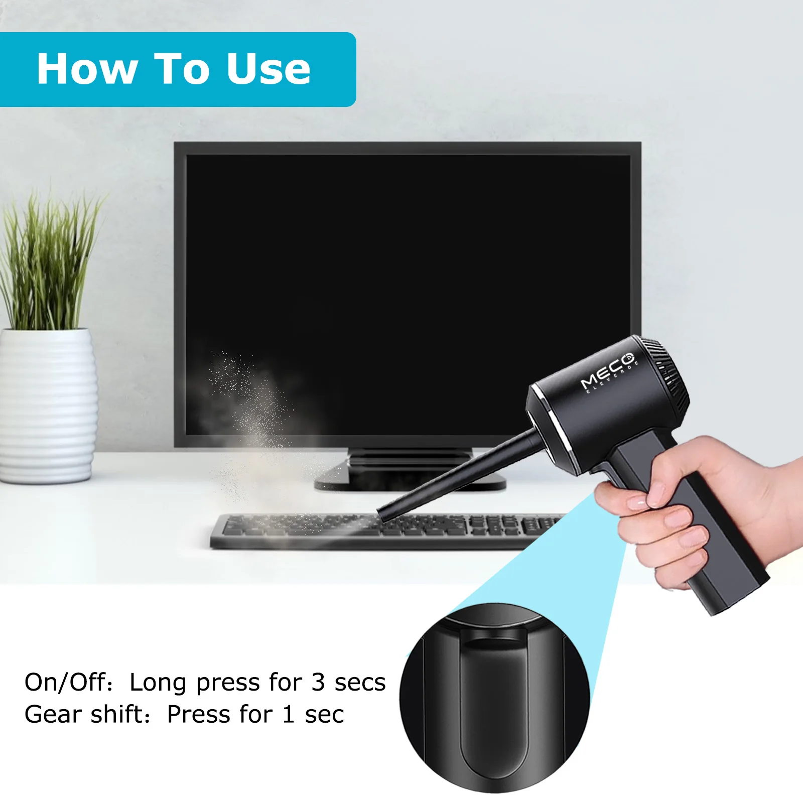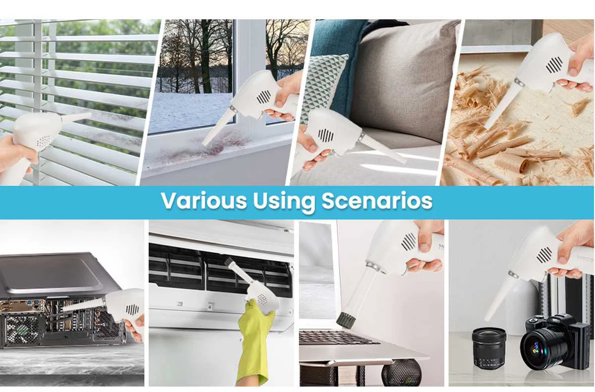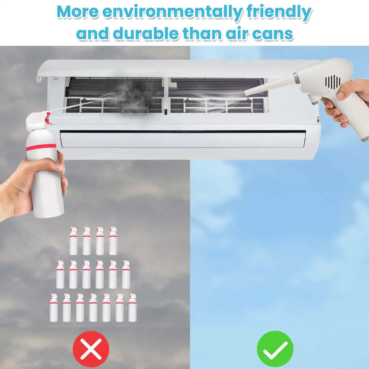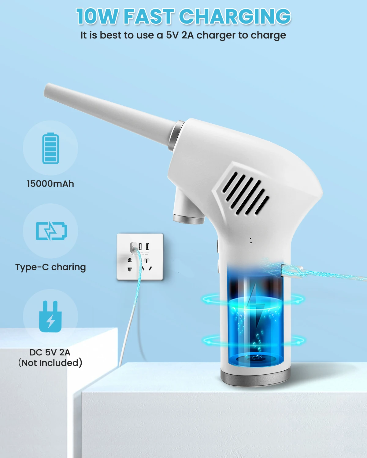 Особенности:【Портативный дизайн 】 Электрический воздушный Пыльник беспроводной, поэтому вы можете использовать пылеуловитель для очистки всей пыли для вас в любое время, в любом месте, без ограничения веревкой. Этот электронный Пыльник также имеет функцию хранения. Вы можете хранить неиспользованные аксессуары в порту хранения продукта, чтобы избежать потери аксессуаров.【2 Скорость Adjustable】Our воздуха очиститель-воздуходув поддерживает связь с 2-мя Скорость Переключение с Скорость до 36000 об/мин, который подойдет для обеспечения обеспечивает глубокое очищение кожи, различные оборудования. Аккумулятор большой емкости 15000 мАч позволяет изделию работать до 1 часа, что достаточно для очистки вашего оборудования.【 Светодиодный дизайн 】вам трудно увидеть и очистить пыль в темном месте, тогда наш портативный Электрический Пыльник С светодиодный светильник поможет вам решить эту проблему. Эффект очистки лучше, чем воздушный Пыльник беспроводной без конструкции лампы.【Широко используется 】наш сжатый воздушный Пыльник используется для клавиатуры, ПК, камер и других электронных устройств. Спрей для очистки воздуха подходит для глубокой очистки офисов, домов и автомобильных интерьеров. Беспроводной воздуходув против пыли может эффективно очищать отверстия для дивана, жалюзи, кондиционеры, вентиляторы и т. д.
