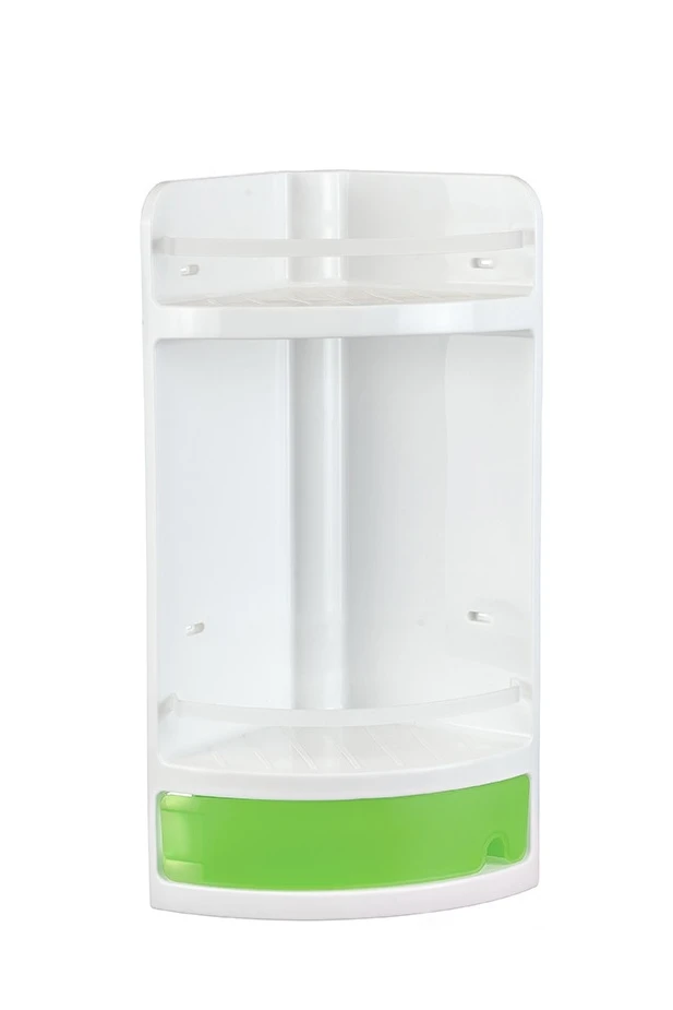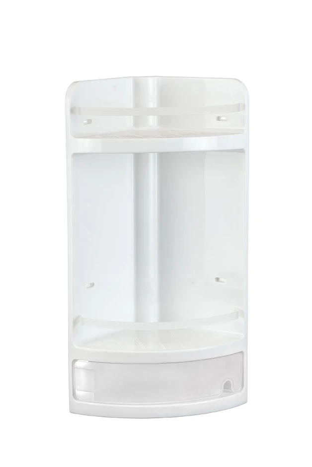 Полка в ванную BestHome двухъярусная угловая c бортиками и выдвижным ящиком 27590