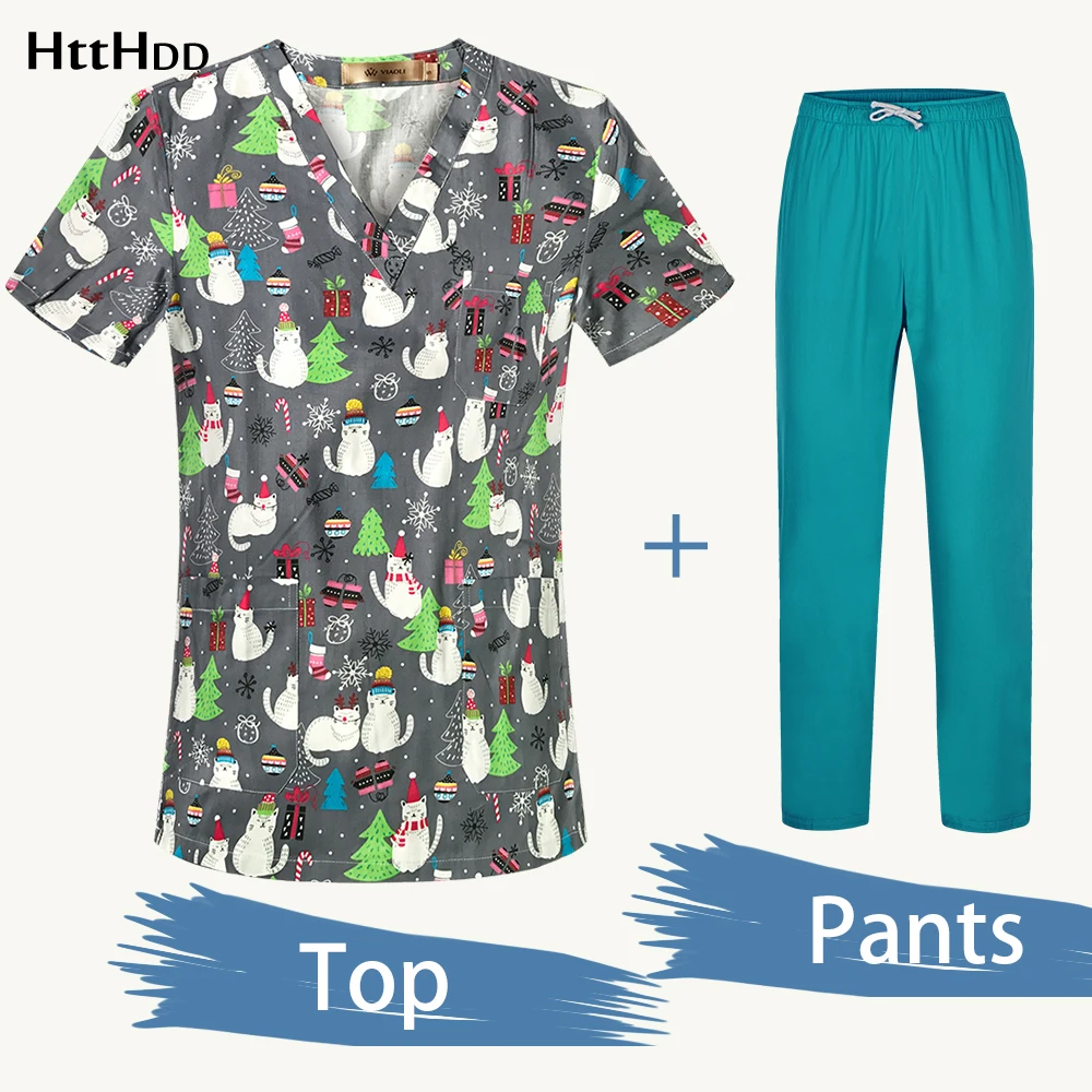 Медицинская Униформа медсестра скраб-топ брюки Одежда для кормления...