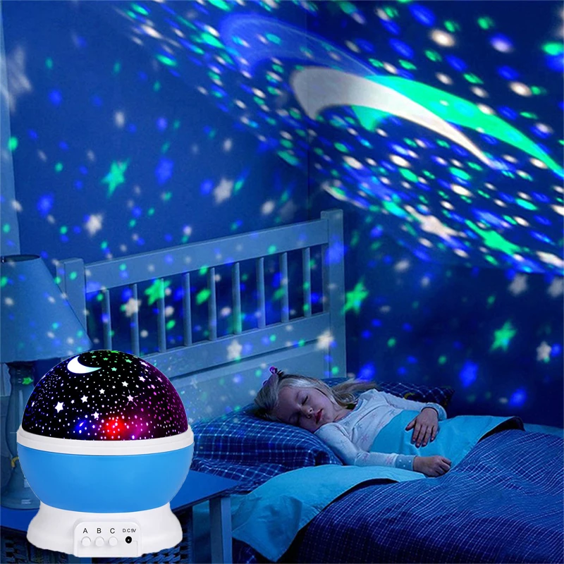 Проектор-Ваш ребенок будет очарован луной, которая вращает звезды. Яркий и Красочный Светодиодный светильник создает спокойную атмосферу в детской комнате и спокойно ночует ночью.