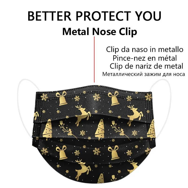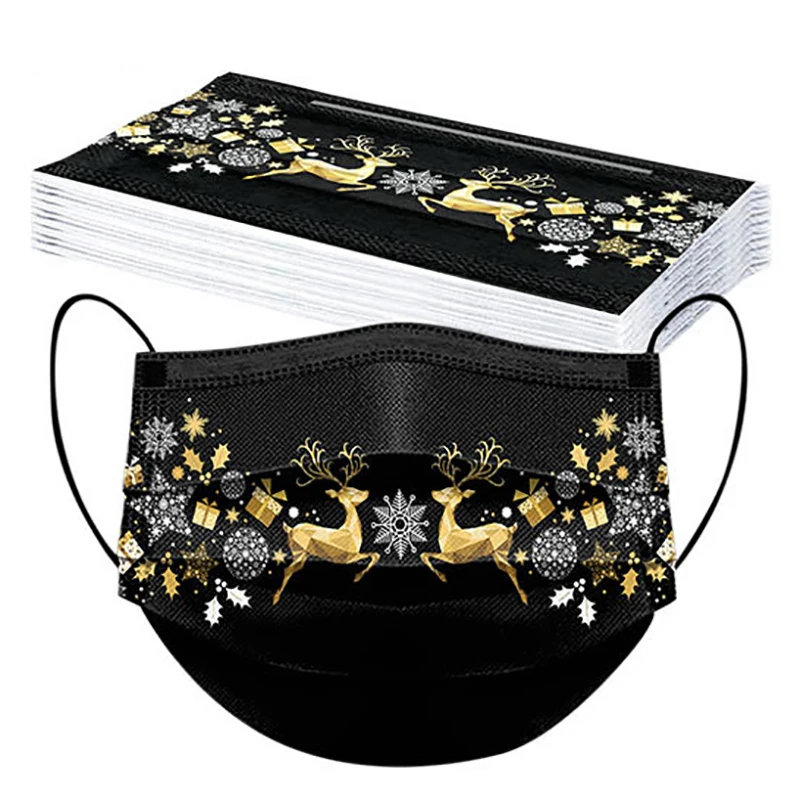 Быстрая Роскошная одноразовая хирургическая маска 10 шт., черная маска для лица, маска для взрослых, олень, звезда, золото, медицинские маски