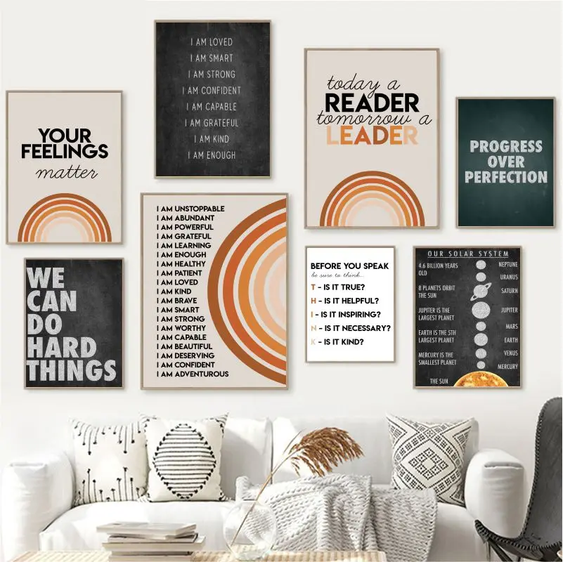 Детское позитивное подтверждение, оформление стен, искусственная уверенность, цитаты, Картина на холсте, фотография