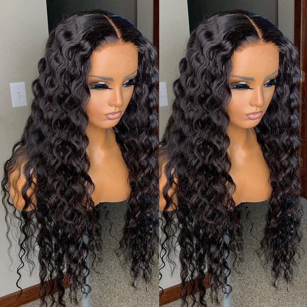 Парик свободного покроя с глубокой волной, харизма, синтетические кружевные передние парики для женщин, натуральные черные парики средней длины, с естественной линией волос, на сетке спереди