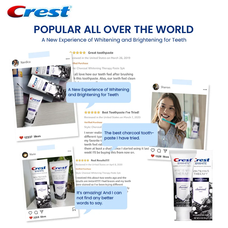 Это не просто отбеливание-это глубокая чистая терапия с древесным углем для ваших зубов! Зубная паста Crest 3D White Whitening Therapy Deep Clean с белым полосатым углем мягко отбеливает зубы, удаляя поверхностные пятна и дарит вам чистое, свежее ощущение с бодрящим ароматом мяты. Кроме того, это фтористая зубная паста, которая повторяет ослабленную эмаль для укрепления зубов и борьбы с полостями. Для достижения наилучших результатов используйте белую зубную щетку с гребнем 3D или белую насадку для электрической зубной щетки 3D. Зубная паста не содержит глютена.