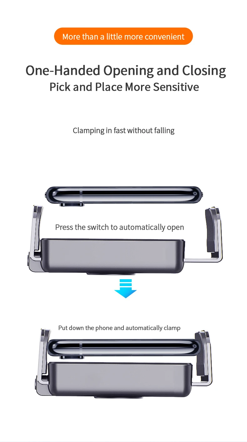 * Цвет: черный, серебристый* Автомобильное крепление для вентиляционного отверстия* Вращение на 360 градусов регулируется* Универсальный для 4,7-6,9 дюймов телефон* Умный чип для автоматического крепления