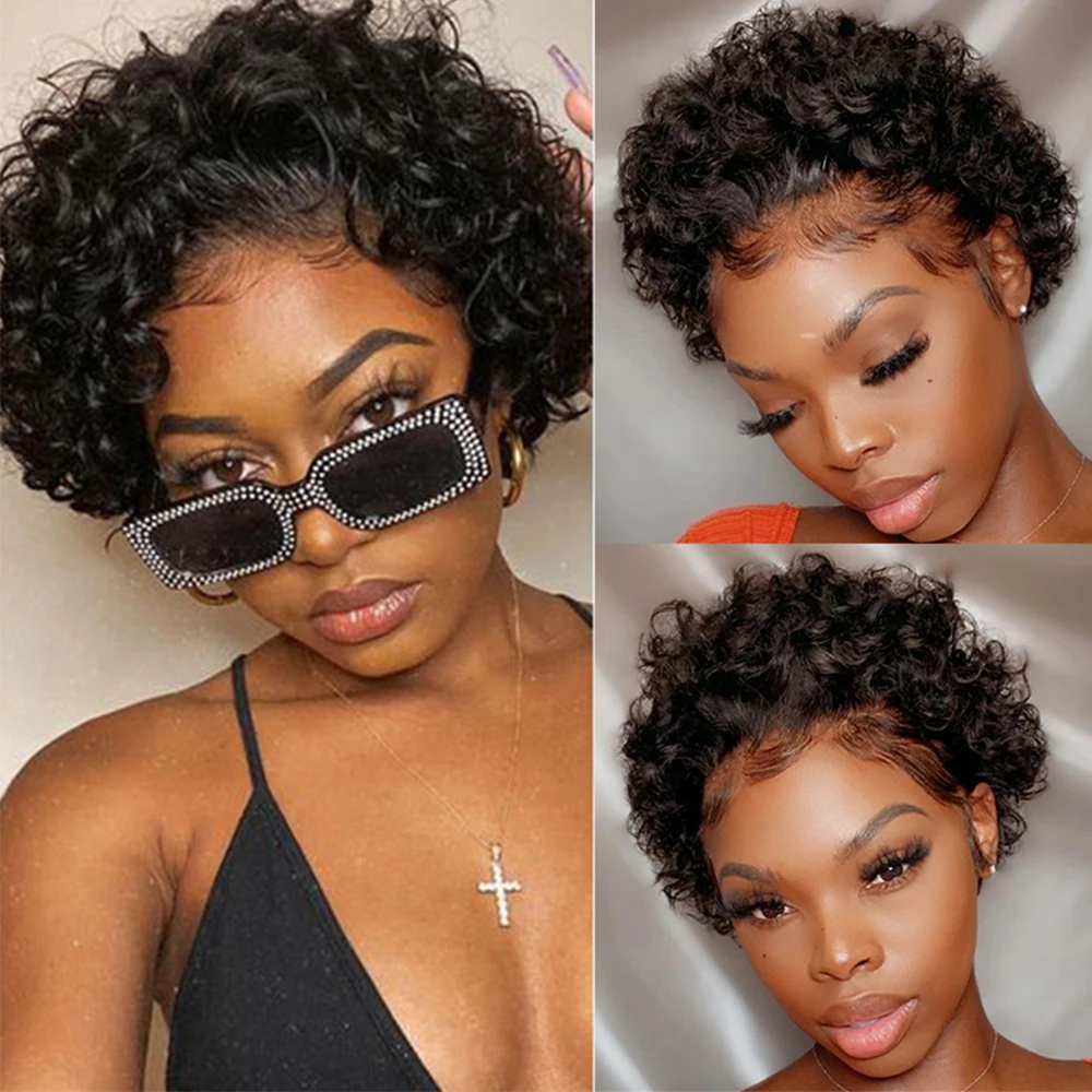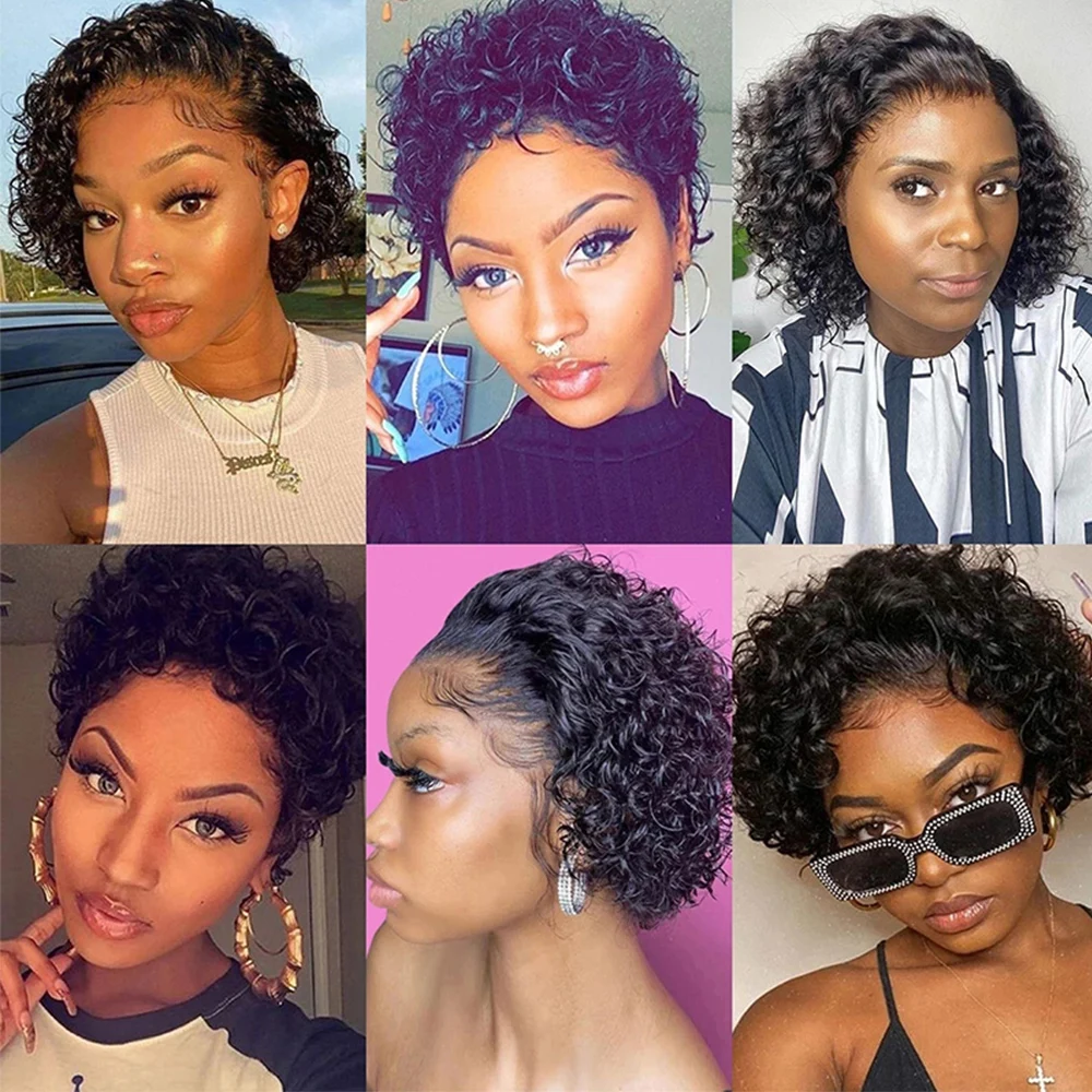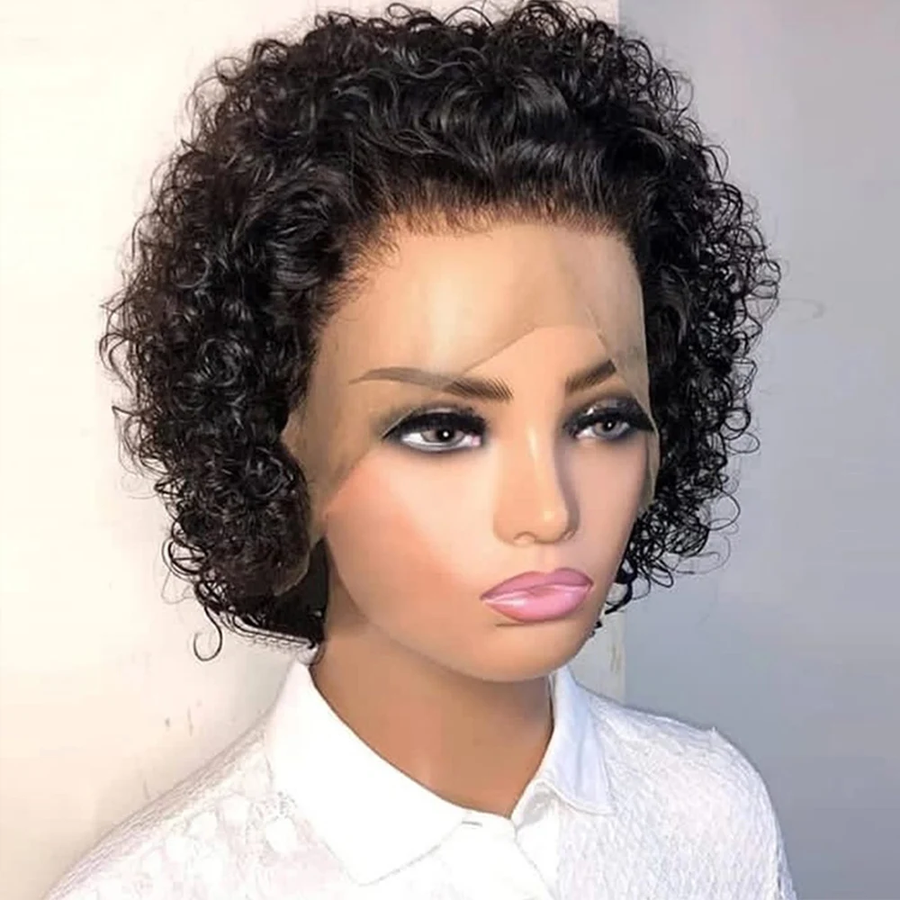Короткие вьющиеся человеческие волосы, парики с глубокой волной, фронтальный парик, парик на сетке, парики из бразильских волос, дешевый парик из человеческих волос