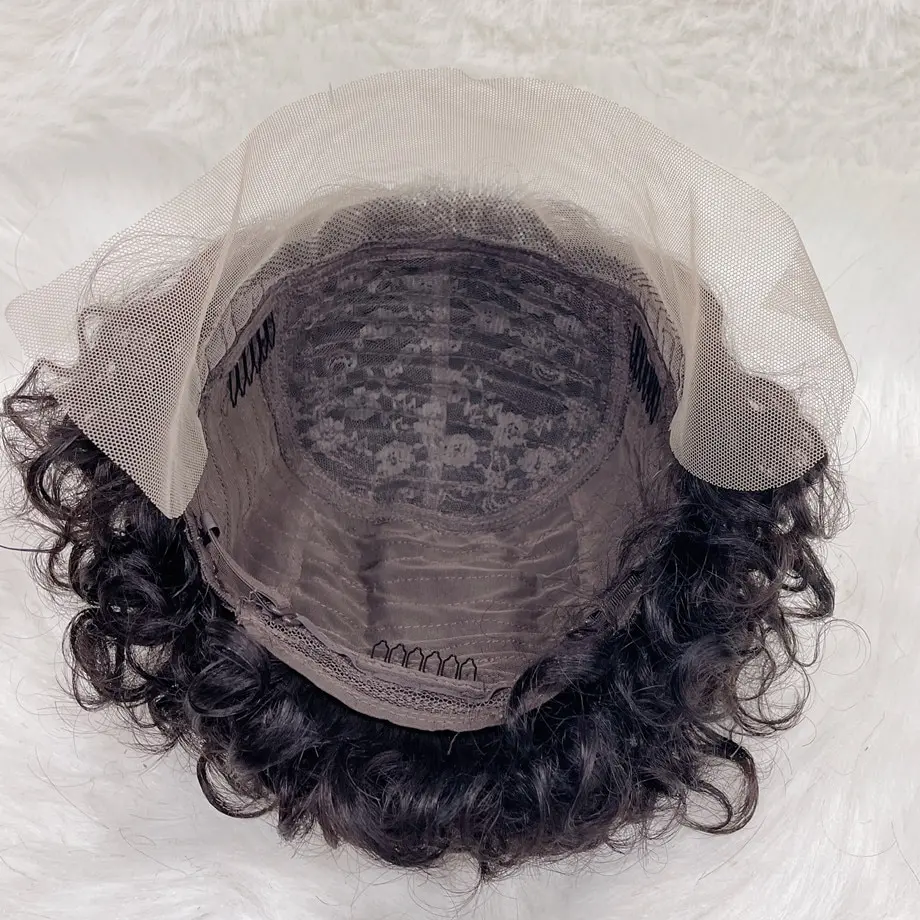 Парики из натуральных волос с короткими кудрявыми волосами для женщ...