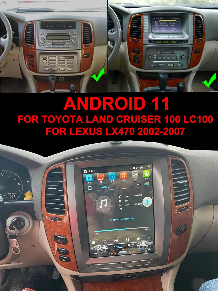 Автомобильная магнитола 12,1 дюйма с дисплеем, Android, навигация, головное устройство для Toyota Land Cruiser 100 Sahara 2005 2006 2004 Tesla, видеоплеер