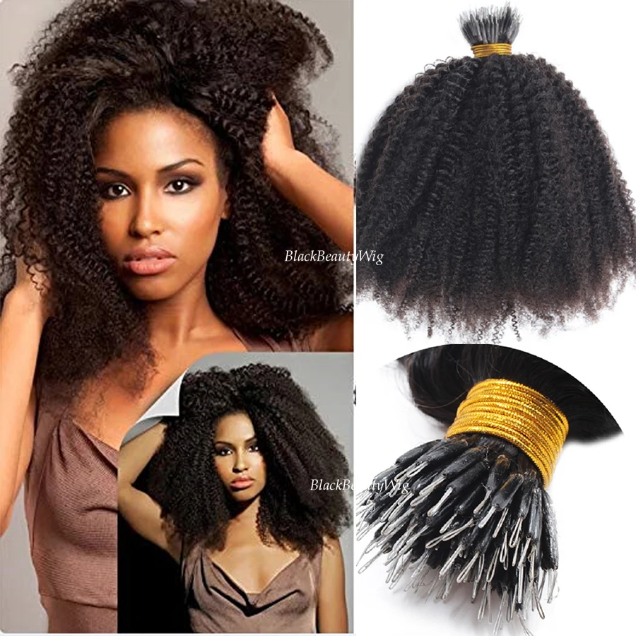 Нано кольцо для наращивания человеческих волос афро кудрявые микро бусины монгольские маленькие кудрявые нано кольцо I Tip волосы микро-звенья 100 г
