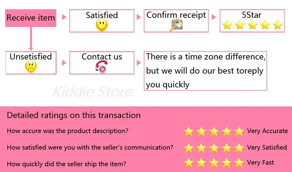 1. Если вы довольны нашим товаром и обслуживанием, пожалуйста, оставьте положительный отзыв и оценку в 5 звезд.