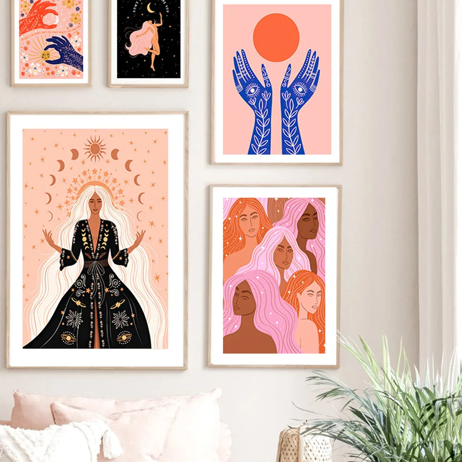 Красочные абстрактные Девушки Солнце Луна формы стены Искусство Холст Живопись скандинавские плакаты и принты стены картины для гостиной Декор