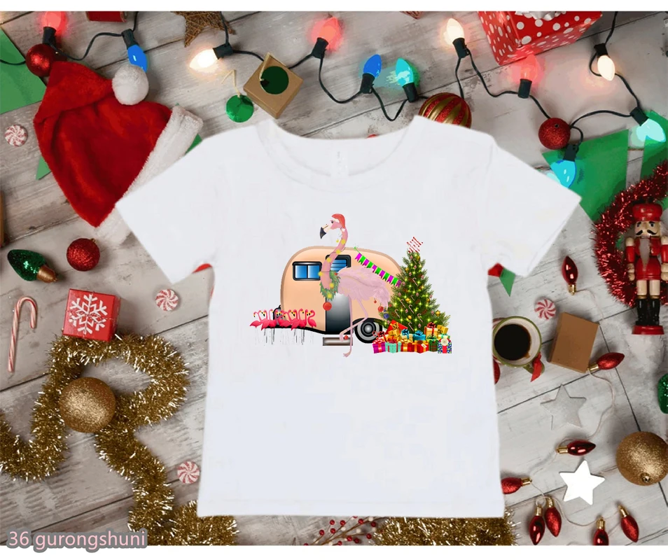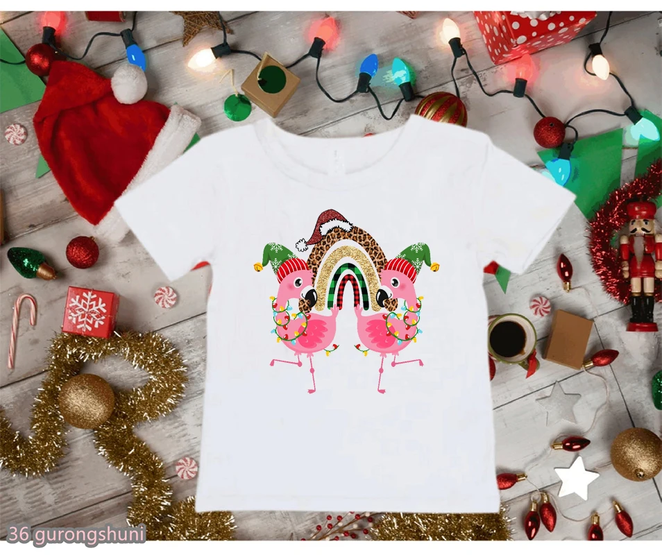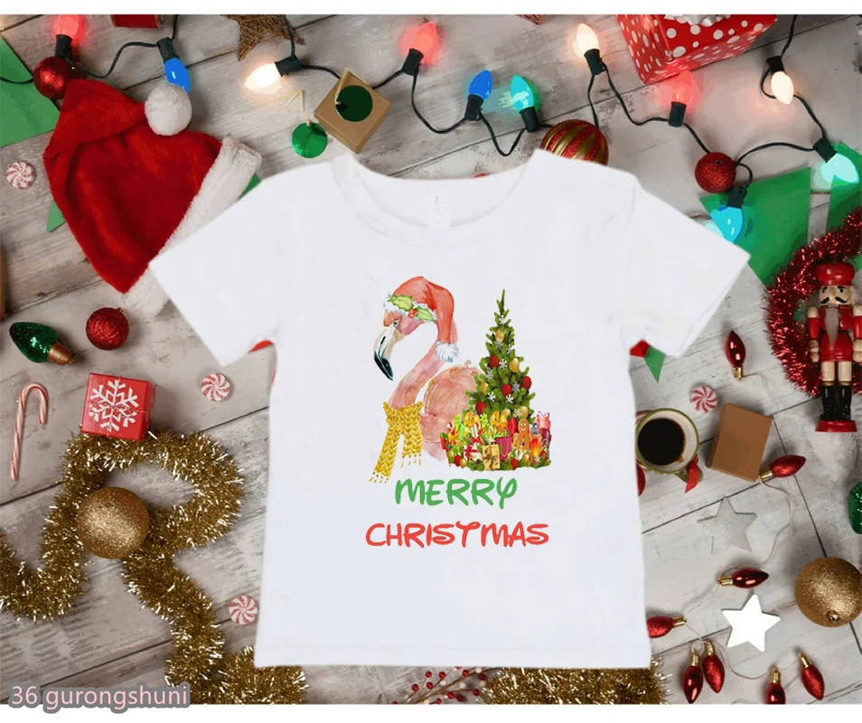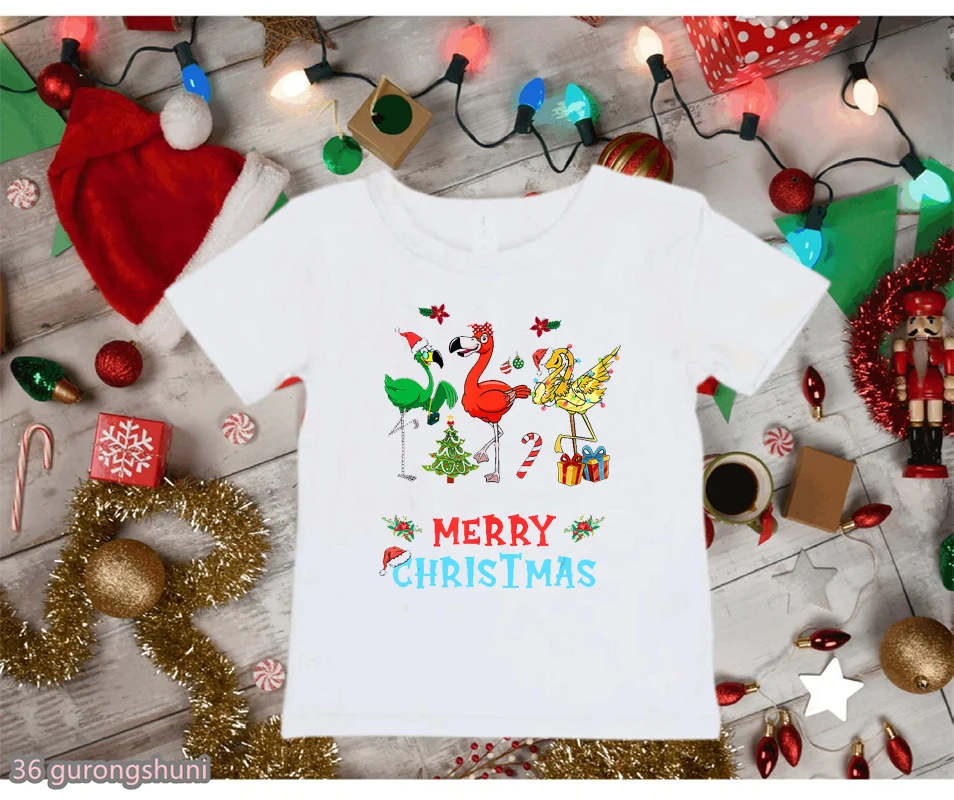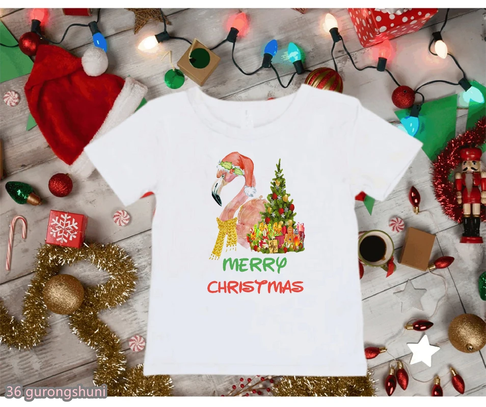 Футболка с графическим принтом фламинго для девочек и мальчиков, подарок на Рождество, милая детская одежда, модная летняя рубашка в стиле Харадзюку, топы