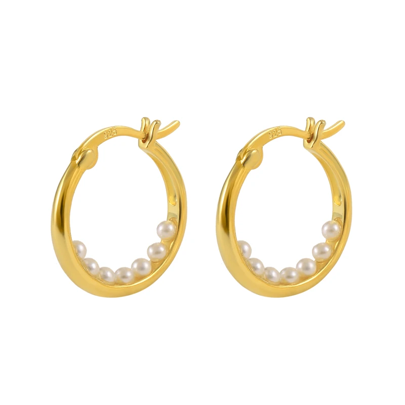 Женские серьги-кольца из серебра 925 пробы с пресноводным жемчугом