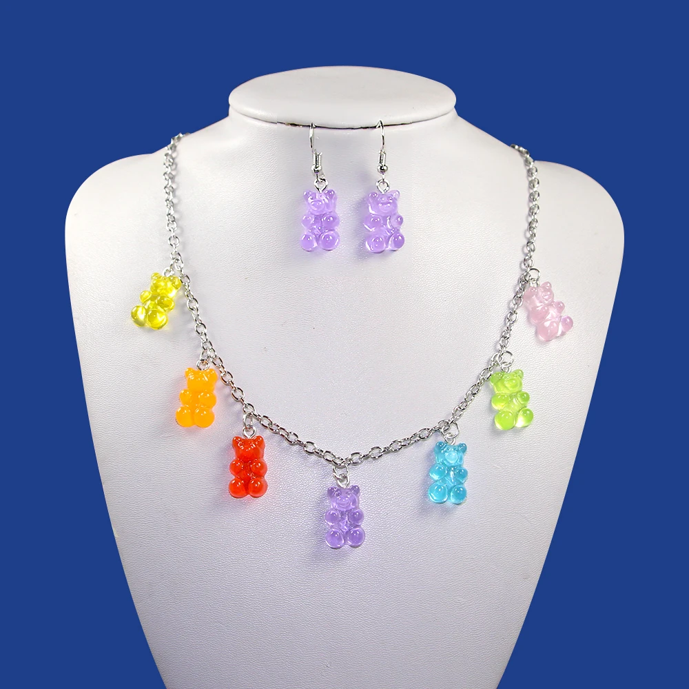 7 пар женских креативных мультяшных медведей, серьги для вечеринок, милые карамельные цвета, ожерелье с животными, набор украшений, подарок